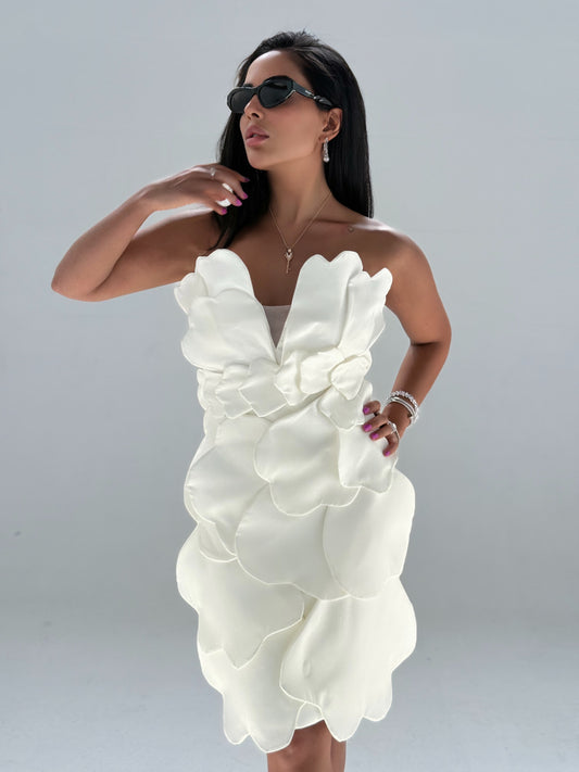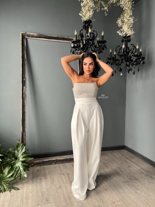 3D Rosette Top + Toile Print Wide-Leg Pants