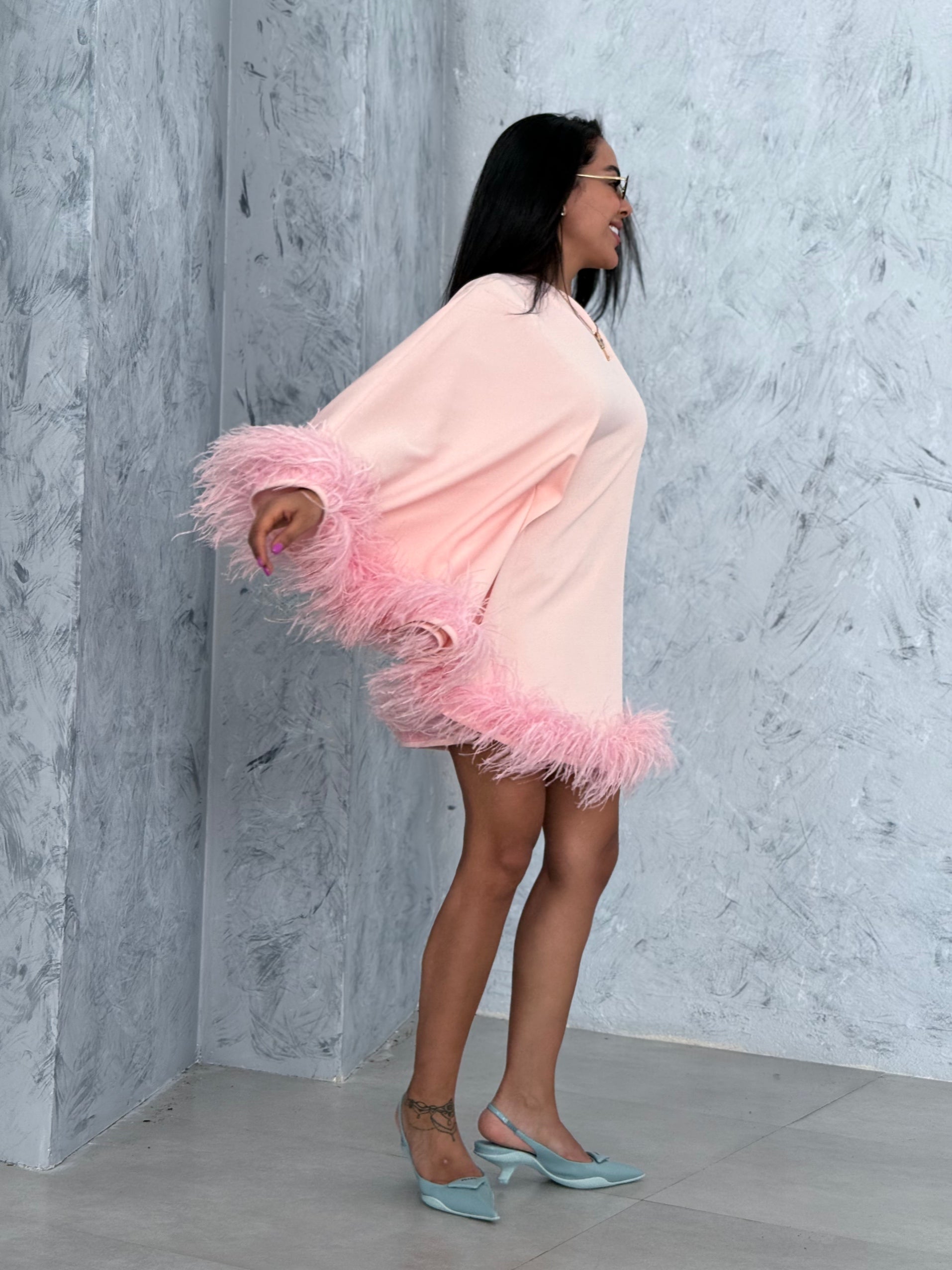 Elegant with a twist — the Luna Dress is made for bold minimalists. Designed in a clean one-shoulder silhouette, it’s cut from structured crepe and finished with soft feather trim at the hem and sleeve for that unforgettable, fashion-editor energy.